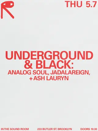 Underground & Black: Analog Soul, JADALAREIGN, Ash Lauryn takes place at public records in New York City, United States on May 7, 2026. Featuring Analog Soul, JADALAREIGN, Ash Lauryn. House sounds all night.