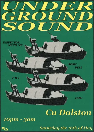 UNDERGROUND SOUND #26 takes place at Cu in London, United Kingdom on May 16, 2026. Featuring PHJ.WAV, Inspector Neptune, Josh Bell, Tam!. House and Electro sounds all night.