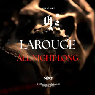UNDERHELL present Larouge ANL takes place at Next Clubbing in Madrid, Spain on April 17, 2026. Featuring Larouge. Techno and Industrial sounds all night.