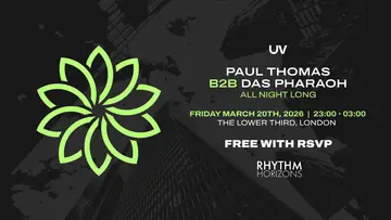 UV: Paul Thomas b2b Das Pharaoh (All Night Long) takes place at The Lower Third in London, United Kingdom on Friday, March 20, 2026. Featuring Paul Thomas. Progressive House, Trance.