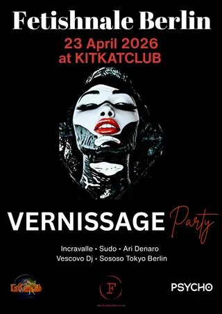 Vernissage Party by Fetishnale Berlin takes place at KitKatClub in Berlin, Germany on April 23, 2026. Featuring NIKO INCRAVALLE, SUDO, Vescovo ClubSet. Techno sounds all night.