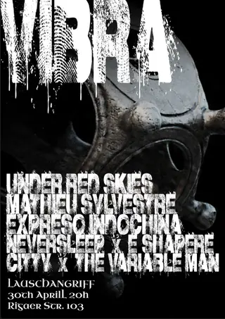 VIBRA on April 30, 2026 at Lauschangriff, Berlin features NEVERSLEEP, Citty and Expreso Indochina performing techno DJ sets.