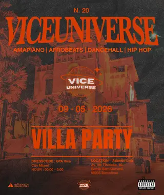 VICE 20 <> VILLA TAKEOVER takes place at Atlantic Club in Barcelona, Spain on May 9, 2026. Afrobeat and Dancehall sounds all night.
