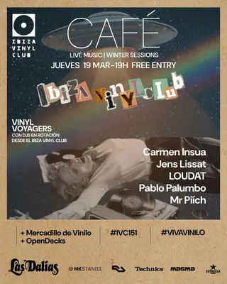 Experience VinylVoyagers of the IVC (IVC151) 2026, a significant moment in Ibiza, Spain's electronic music calendar on Thursday, March 19, 2026, featuring Jens Lissat and Peacharoo. This event brings together artists and fans who share a passion for dance music culture and House, Balearic sounds.