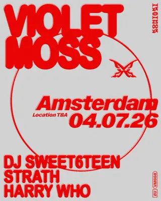 Violet Moss w. dj sweet6teen takes place at TBA in Amsterdam, Netherlands on July 4, 2026. Featuring dj sweet6teen, Strath, Harry Who. House and Acid sounds all night.