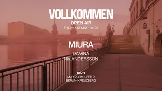 VOLLKOMMEN - Open Air with Miura takes place at Rivo in Berlin, Germany on May 1, 2026. Featuring Miura, DAVINA, Nik Andersson. Expect House and Tech House throughout the night.