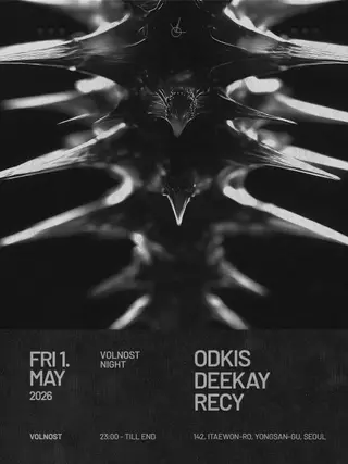 Volnost Night on May 1, 2026 at Volnost, Seoul features odkis, Deekay and Recy performing techno DJ sets.