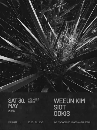 Volnost Night takes place at Volnost in Seoul, South Korea, on May 30, 2026. The event features a lineup of artists representing the techno and electro genres. WEEUN KIM is known for her contributions to the techno scene in South Korea, focusing on deep and melodic sounds. Siot, also hailing from South Korea, is recognized for his energetic electro sets. odkis is an emerging artist, blending various electronic styles with a fresh approach.