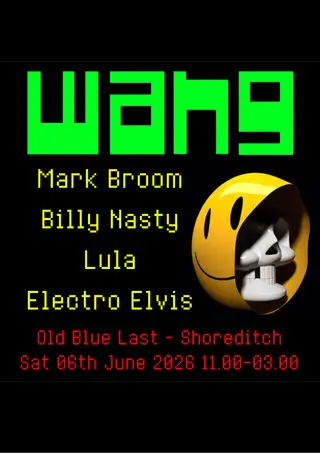 Wang: Mark Broom + Billy Nasty + Electro Elvis + Lula takes place at The Old Blue Last in London, United Kingdom on June 6, 2026. Featuring Mark Broom, Billy Nasty, Electro Elvis. Techno and Acid sounds all night.