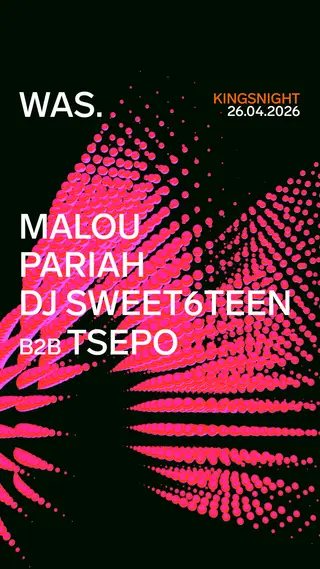 WAS. // Kingsnight on April 26, 2026 at WAS., Utrecht features Malou (NL), Pariah, dj sweet6teen and Tsepo performing techno DJ sets.