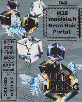 WAX WAGGLE on April 30, 2026 at Aoyama Hachi, Tokyo features monielu.h and Neon Noir performing techno DJ sets.