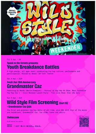 Wild Style Screening Tour feat. Grandmaster Caz takes place at Howard Assembly Room in Leeds, United Kingdom on April 4, 2026. Featuring Founding Father. Hip-Hop.