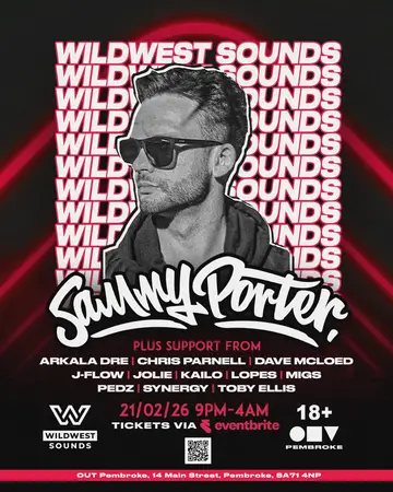 Event Details Event: Wildwest Sounds Presents: Sammy Porter Date: 21/02/2026 Time: 8pm - 4am Venue: OUT Pembroke Genre: House / Tech House / Dance Why You’ll Love It Live DJ set from Sammy Porter — one of the hottest names on the UK house circuit Supported by Wildwest Sounds resident DJs + Top Local Talent State-of-the-art sound system and lighting Electric crowd and top-tier vibes Tickets are limited