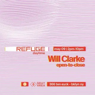 Will Clarke Extended Set takes place at Refuge in New York City, United States on May 9, 2026. Featuring Will Clarke. Techno sounds all night.