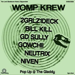 Womp Krew Pop Up on May 1, 2026 at The Lord Gladstone, Sydney features electronic music performances bass DJ sets.