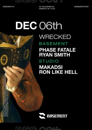 WRECKED: Phase Fatale / Makadsi / Ron Like Hell / Ryan Smith on December 6, 2025 at BASEMENT, New York features Phase Fatale, Ryan Smith, Makadsi and Ron Like Hell performing techno DJ sets.