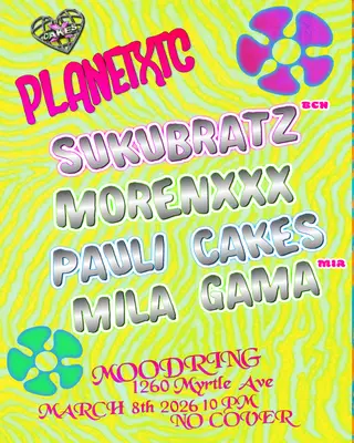 xcakes: Sukubratz, MORENXXX, Mila Gama, Pauli Cakes takes place at Mood Ring in New York, United States on March 8, 2026. Featuring Sukubratz, MORENXXX, Pauli Cakes, Mila Gama. Techno and Acid sounds all night.
