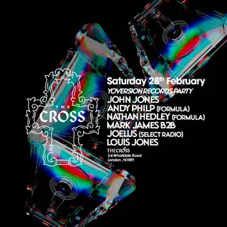 Yoversion Records Party x Formula takes place at The Cross in London, United Kingdom on February 28, 2026. Featuring John Jones, Andy Philp. House and Club sounds all night.