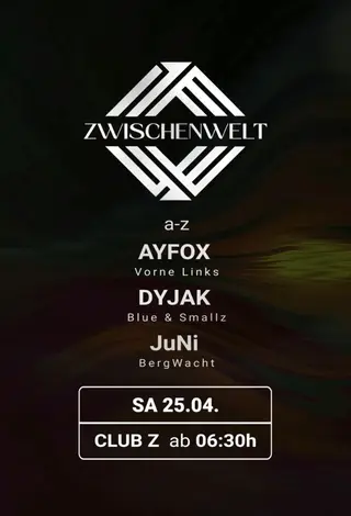 Zwischenwelt Afterhour on April 25, 2026 at Club Zimmermanns, Cologne features electronic music performances techno DJ sets.