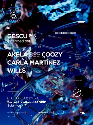 The lineup features Gescu, a Madrid-based artist celebrated for his contributions to the electronic music scene. Alongside him, Akela also hails from Madrid and brings his unique aesthetic to the minimal sounds of the night. coozy, another local talent, adds to the mix with his electronic rhythms, while Carla Martínez and Wills, both from Madrid as well, round out the diverse lineup. Collectively, these artists represent a strong local presence and showcase the depth of minimal and minimal techno music.