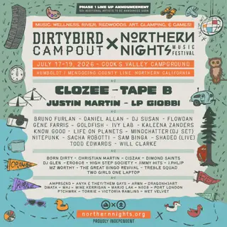 Two of Northern California’s most celebrated independent festivals, Dirtybird Campout and Northern Nights Music Festival just unveiled the phase one lineup for their highly anticipated 2026 return. Taking place July 17-19 at Cook’s Valley Campground along the Humboldt/Mendocino County line, the festival will once again transform the towering Redwoods and Eel River into an intimate, fully immersive playground for music, art, nature, and community. Returning after a sold-out 2025 debut collaboration, Dirtybird Campout x Northern Nights’ partnership continues to evolve with a sharpened focus on independence, curation, and connection. This year’s Phase One lineup features over 40 artists, with asecond wave still to come. A Star-Studded Lineup Leading the 2026 Phase One announcement is internationally acclaimed French artist and fan favorite Northern Nights alumni CloZee, who will also headline a special Road to Dirtybird Campout x Northern Nights show at the Napa Valley Ruins on 5/30, alongside in-demand fan favorite Tape B, who channels the nostalgic sound of old-school dubstep through a contemporary bass and hip-hop lens. They’re joined by Justin Martin, a pioneering figure of the Dirtybird sound revered for his playful and innovative approach to house music, as well as FEMME HOUSE founder LP Giobbi, a dynamic force in piano-driven electronic performance and dance music inclusivity. Genre fluidity remains a defining thread throughout Dirtybird Campout x Northern Nights’ musical programming. From the commanding presence of UK grime icon Flowdan to the experimental textures of Dimond Saints, the euphoric soundscapes of Daniel Allan, the global house rhythms of Brazil’s Bruno Furlan and DJ Glen, and the timeless grooves of Todd Edwards, the lineup reflects a thoughtfully curated blend of sounds built for discovery. Live and hybrid performances further expand the festival’s sonic palette, from GoldFish’s electronic-meets-jazz instrumentation and High Step Society’s brass-fueled dance energy to the soul-driven vocals of Kaleena Zanders, the psychedelic funk textures of Shaded (Live), and the groove-rich stylings of Life on Planets. Dirtybird Campout devotees will flock to a standout roster of label affiliates and longtime favorites. This includes the irreverent, groove-heavy sounds of Sacha Robotti, fresh off the release of his debut album I, ROBOTTI, house and techno mainstay Will Clarke, Chicago stalwart Gene Farris, boundary-pushing selector Mz Worthy, and UK bass innovators Ivy Lab, who bring their farewell tour to the Redwoods. Returning Dirtybird favorites including Christian Martin, Born Dirty, and J.Phlip further anchor a deep and well-rounded bill. True to the ethos of both brands, the Dirtybird Campout x Northern Nights lineup leans into rising and next-wave talent – artists shaping what’s next in dance music. Breakout names like Bristol linchpin Sam Binga, bass innovator Nitepunk, alternative electronic act Mindchatter (DJ Set), and fast riser DJ Susan reflect this forward-looking approach. Elsewhere, artists including Port London, Know Good, ero808, and underscore the festival’s continued investment in emerging voices. A Festival Among The Trees Nestled in the heart of the Emerald Triangle, Cook’s Valley Campground sets the stage with towering Redwoods, riverfront hideaways, and Northern California’s rugged natural beauty, all just 190 miles north of San Francisco. Across the grounds, programming spills out over multiple stages, including the Main Stage, River Stage, Bird Bath Stage, Grove Stage, and late-night Bunker, each carving out its own sonic universe, from sun-drenched grooves along the river to after-hours sessions that stretch deep into sunrise beneath the trees. Beyond the Music Dirtybird Campout x Northern Nights leans fully into its free-spirited participatory ethos. Fans can expect a weekend of camp games, artist-led antics, and spontaneous moments that blur the line between performer and crowd, hallmarks of the Dirtybird Campout legacy, set against Northern Nights’ nature-forward, creatively charged backdrop. Whether it’s daytime mischief, late night wanderings, or stumbling upon unexpected back to back sets, it’s less about following a schedule and more about seeing where the weekend takes you. Dirtybird Campout x Northern Nights expands its ‘Co-Creators’ program, inviting attendees to jump in as volunteers and collaborators, further reinforcing the idea that this isn’t just something you show up to, but something you help build. It’s an open call to bring your own flavor into the mix and leave your mark somewhere between the river and the Redwoods. New For 2026 This year, Dirtybird Campout x Northern Nights introduces a series of updates designed to enhance the overall experience, including the option for all ticket holders to arrive early with expanded Thursday entry following last year’s pilot program. Fans who purchase passes before June 25 will also have the option to receive wrist