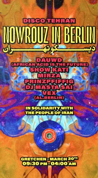 On Friday, March 20, 2026, Gretchen in Berlin will host Disco Tehran - Nowrouz in Berlin (In Solidarity with the People of Iran), an event aiming to raise funds for VPN services to help bypass severe internet restrictions in Iran. This gathering stands as a poignant act of solidarity with the Iranian people, using music as a resilient force for connection, memory, and resistance. By merging cultural celebration with advocacy, the event highlights the power of community support through shared experiences in music.