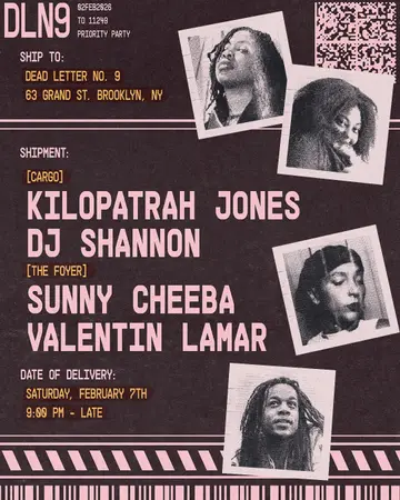 The event featuring Kilopatrah Jones, DJ Shannon, Sunny Cheeba, and Valentin Lamar is scheduled for Saturday, February 7, 2026, in New York. For more details, visit Kilopatrah Jones, DJ Shannon, Sunny Cheeba, Valentin Lamar.