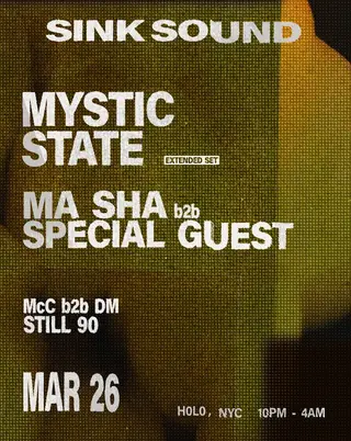 The lineup for SINK SOUND features a diverse selection of artists, each bringing a unique flavor to the event. 90 (1) hails from New York and specializes in electronic music, showcasing local talent with a unique perspective on the genre. STILL (NYC), also from New York City, contributes to the electronic scene with distinct sounds that resonate with the local vibe. Meanwhile, Mystic State from London adds an international flair to the mix, known for their genre-blurring productions that often incorporate elements of dubstep. Lastly, Ma Sha from Berlin rounds out the roster, bringing an edge from the European electronic music scene, thereby enriching the overall musical experience.